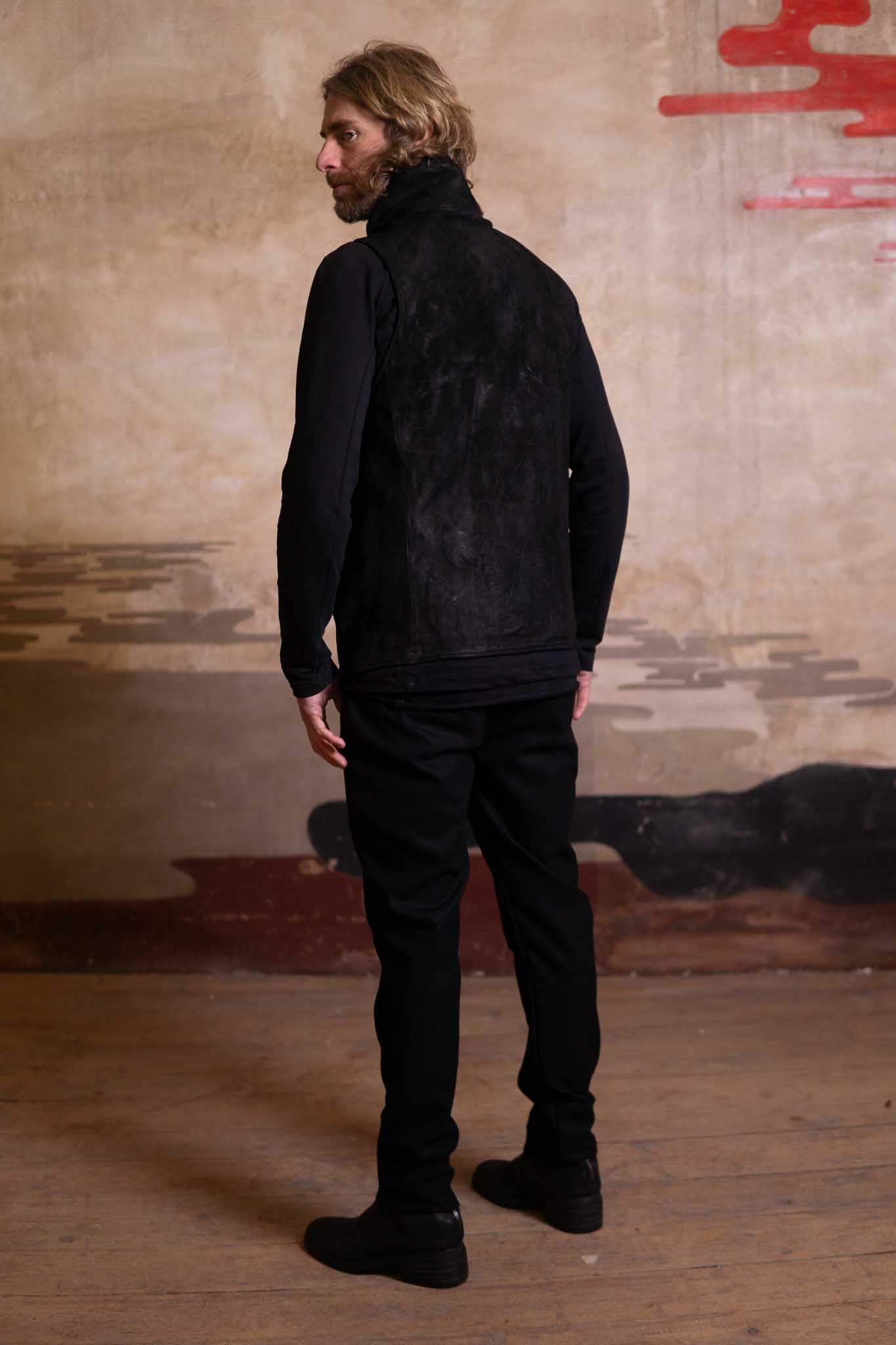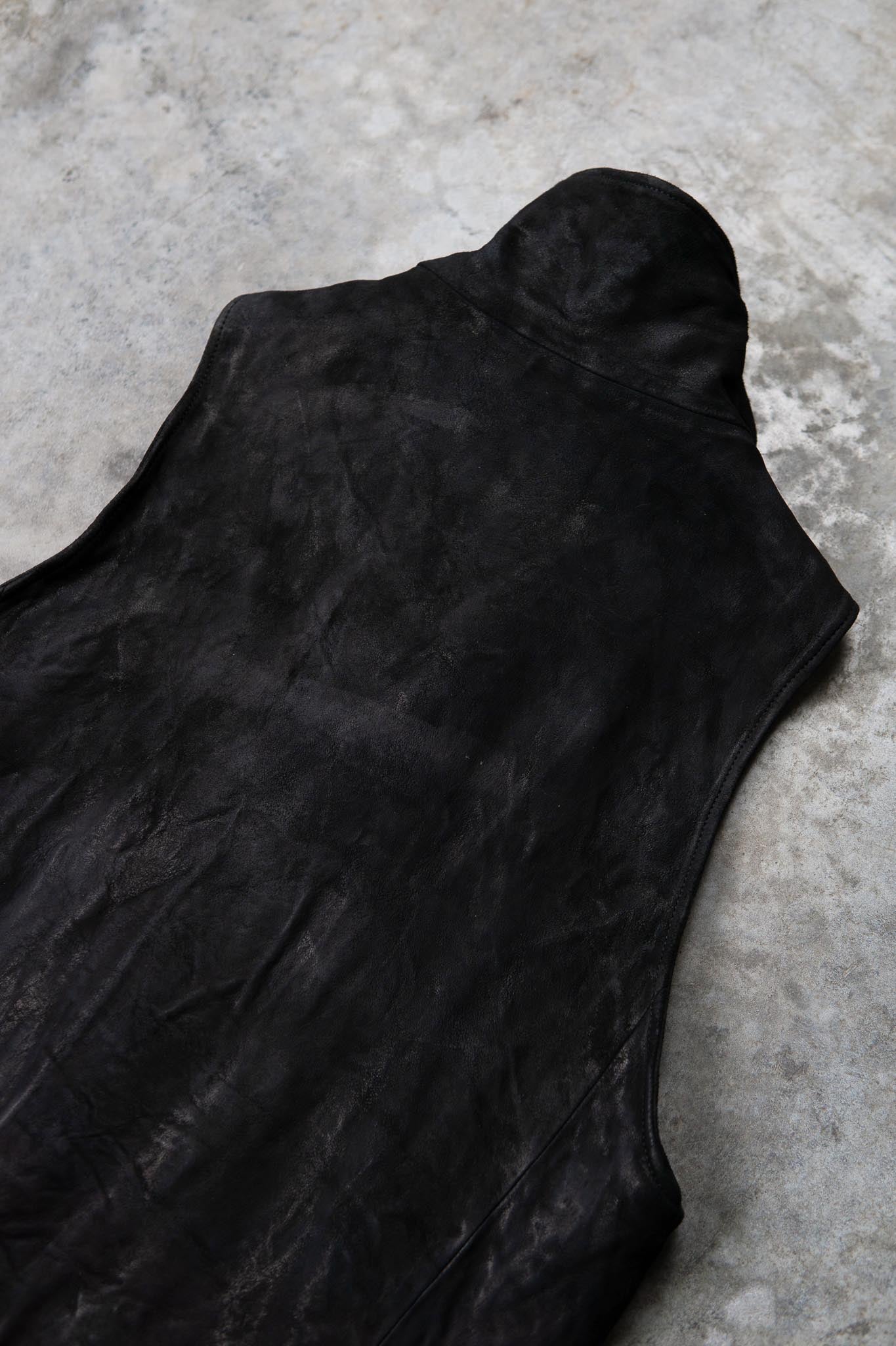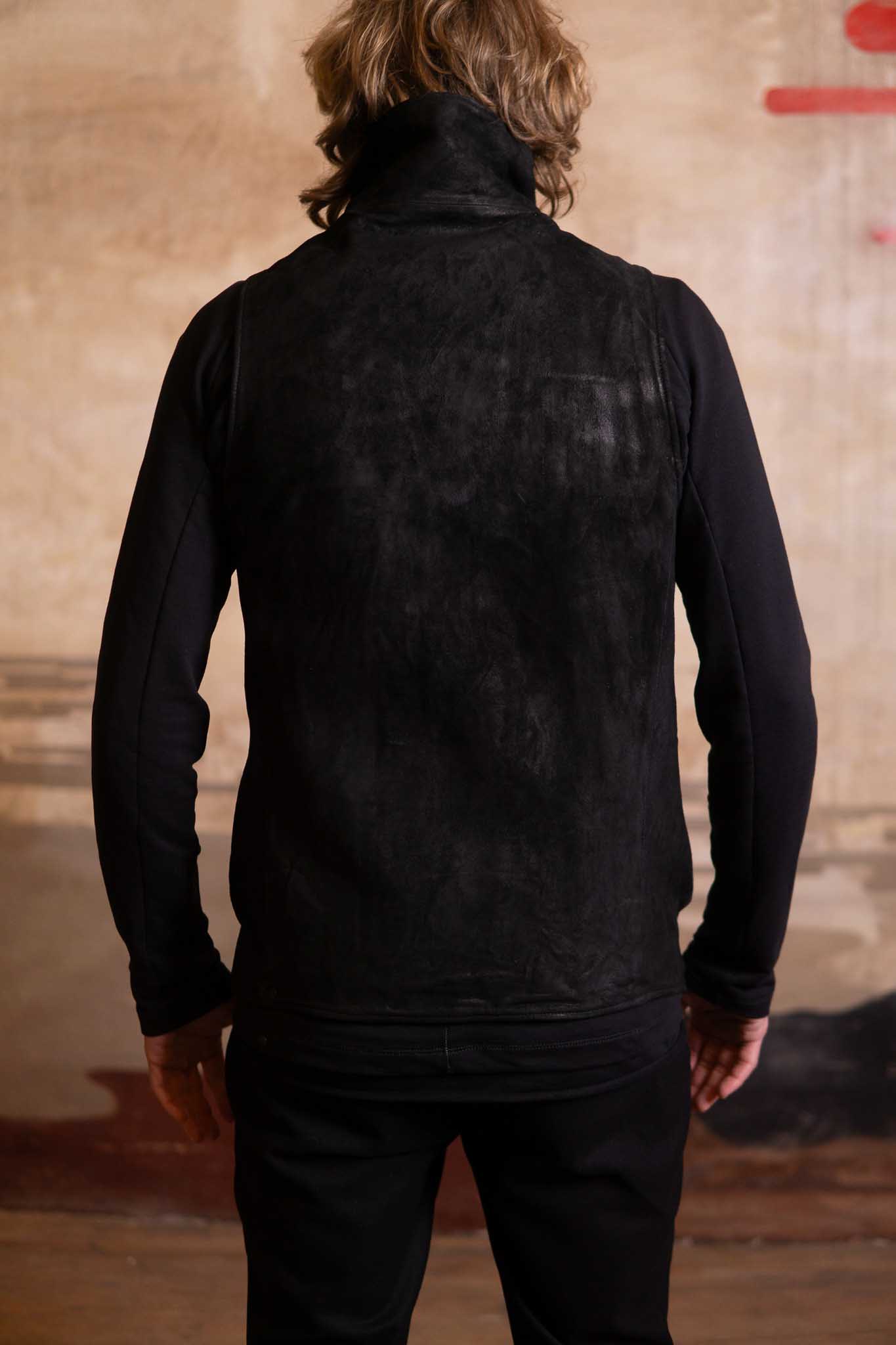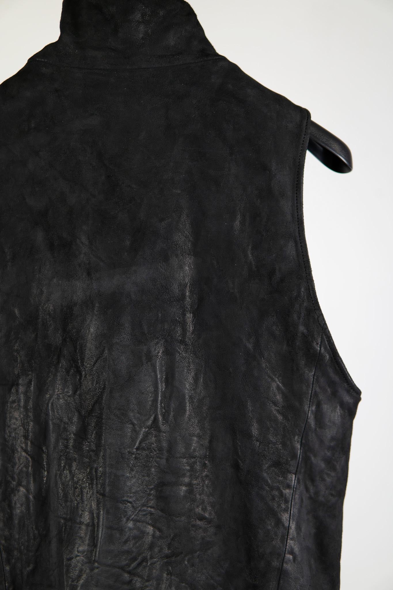 HEAVY WEIGHT SHEEP LEATHER HIGH COLLAR ZIP VEST LINED HV-1