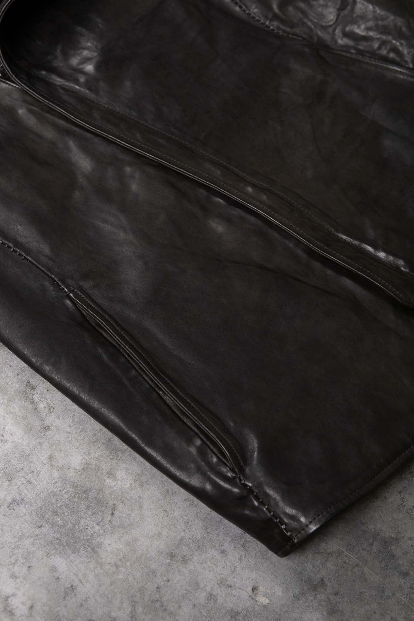 Compared to other leathers, horse leather shrinks in an irregular manner. Thus we determine a suitable area for cutting out each part of the product taking this into account.