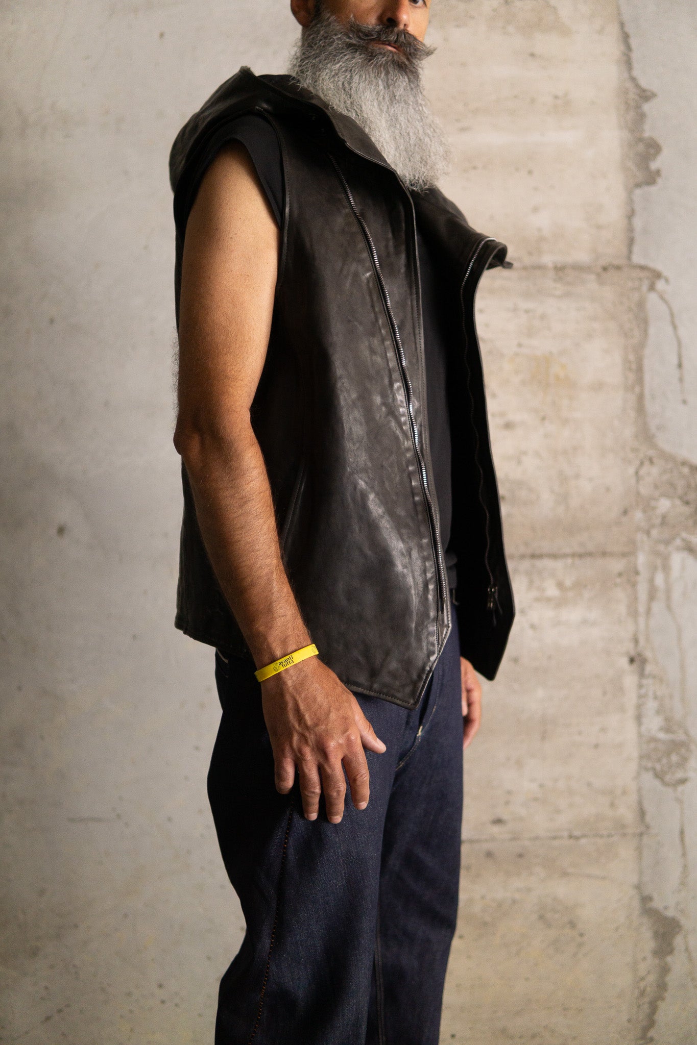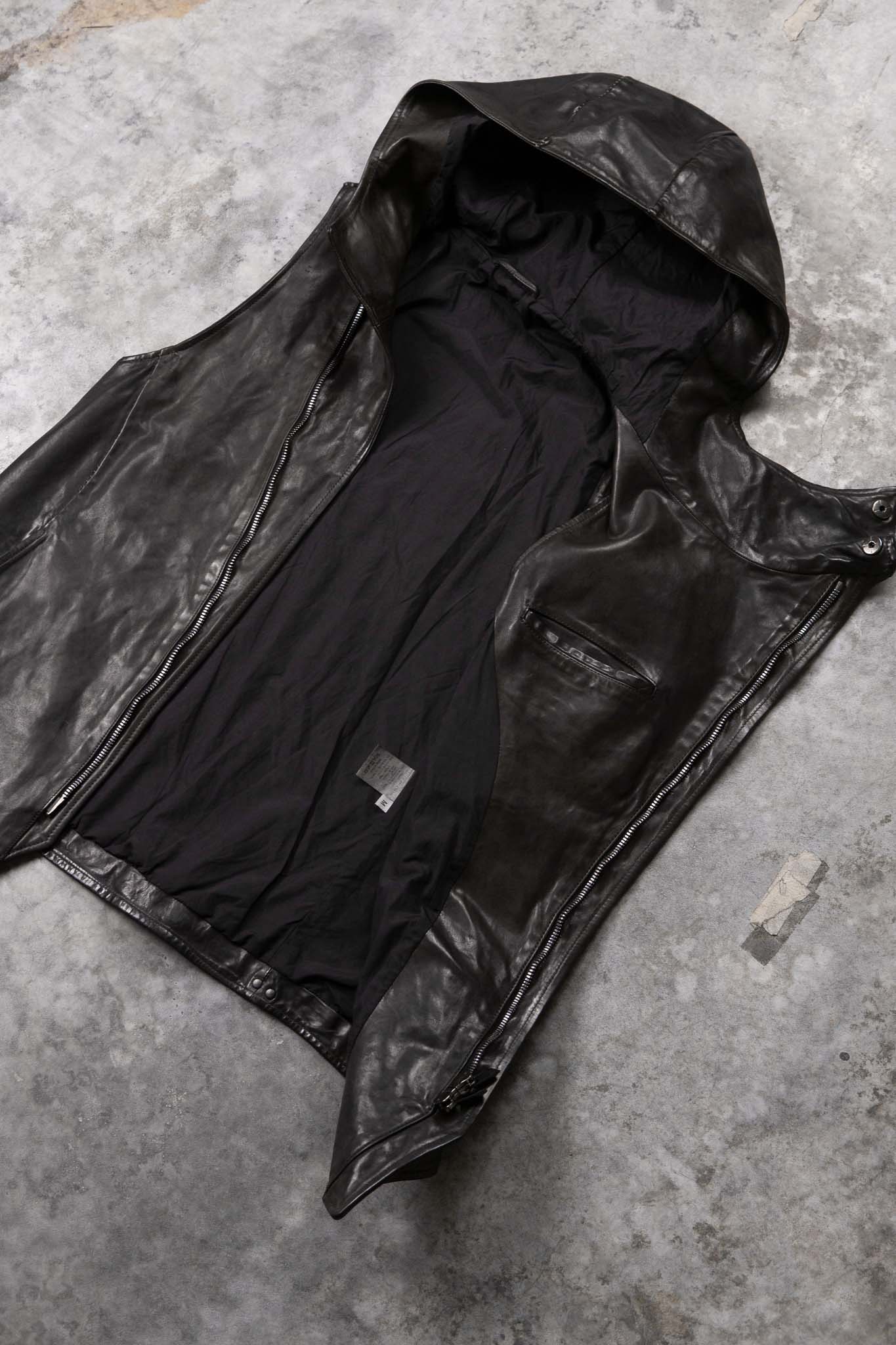 HORSE LEATHER HI COLLAR HOODED ZIP FRONT VEST LINED HV-2