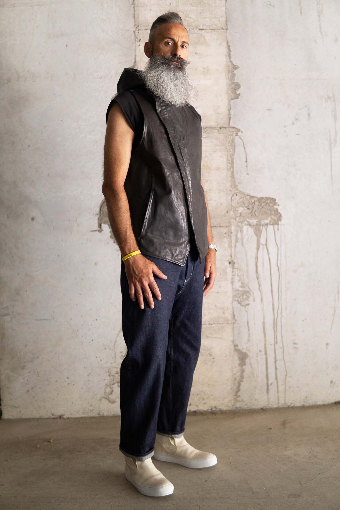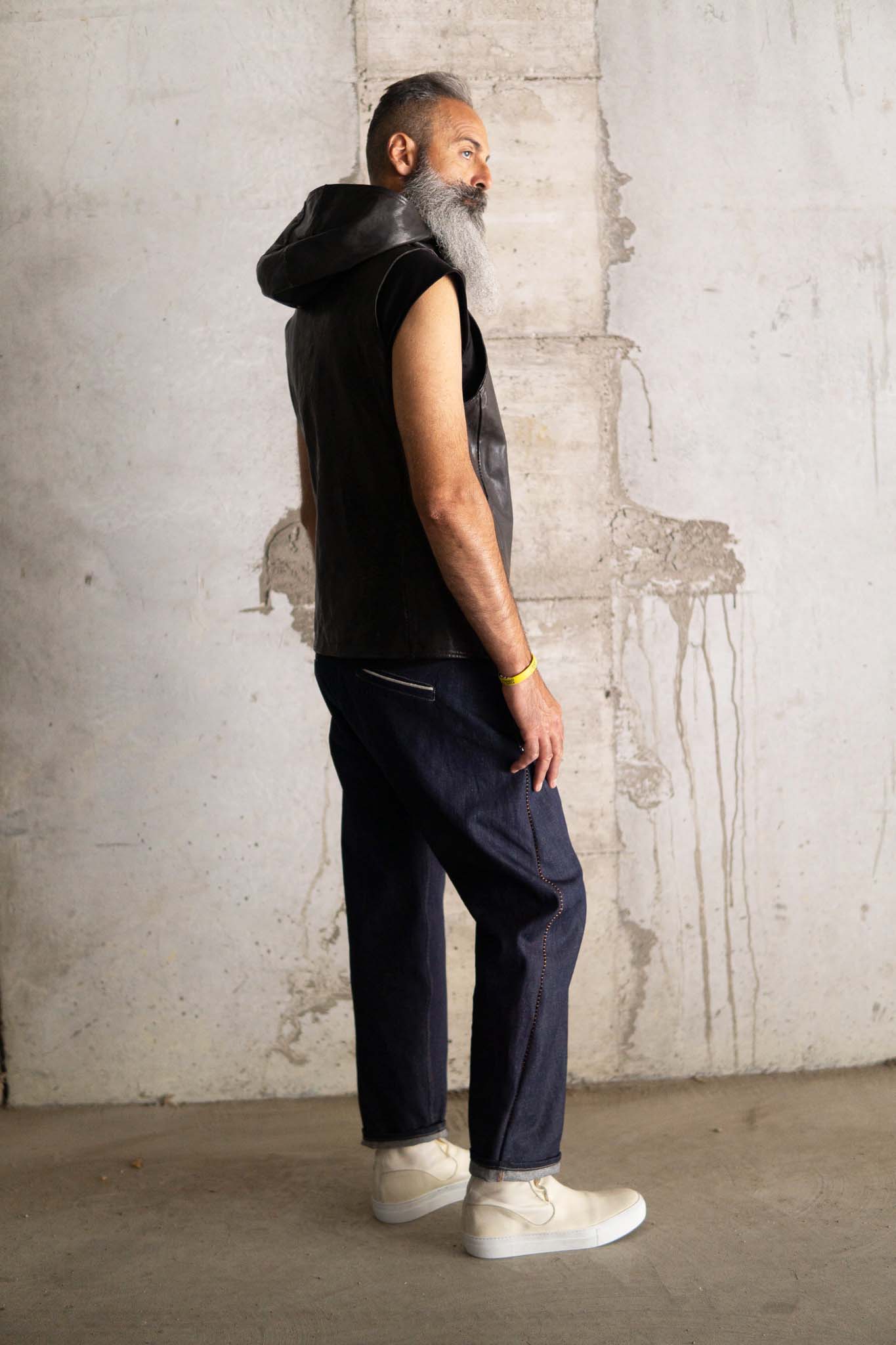 After the piece dyeing process, there is the lengthy natural drying of the products. Meanwhile, we hand correct the size. Then we oil and polish them when they are completely dry. All these processes are performed inhouse and by hand.