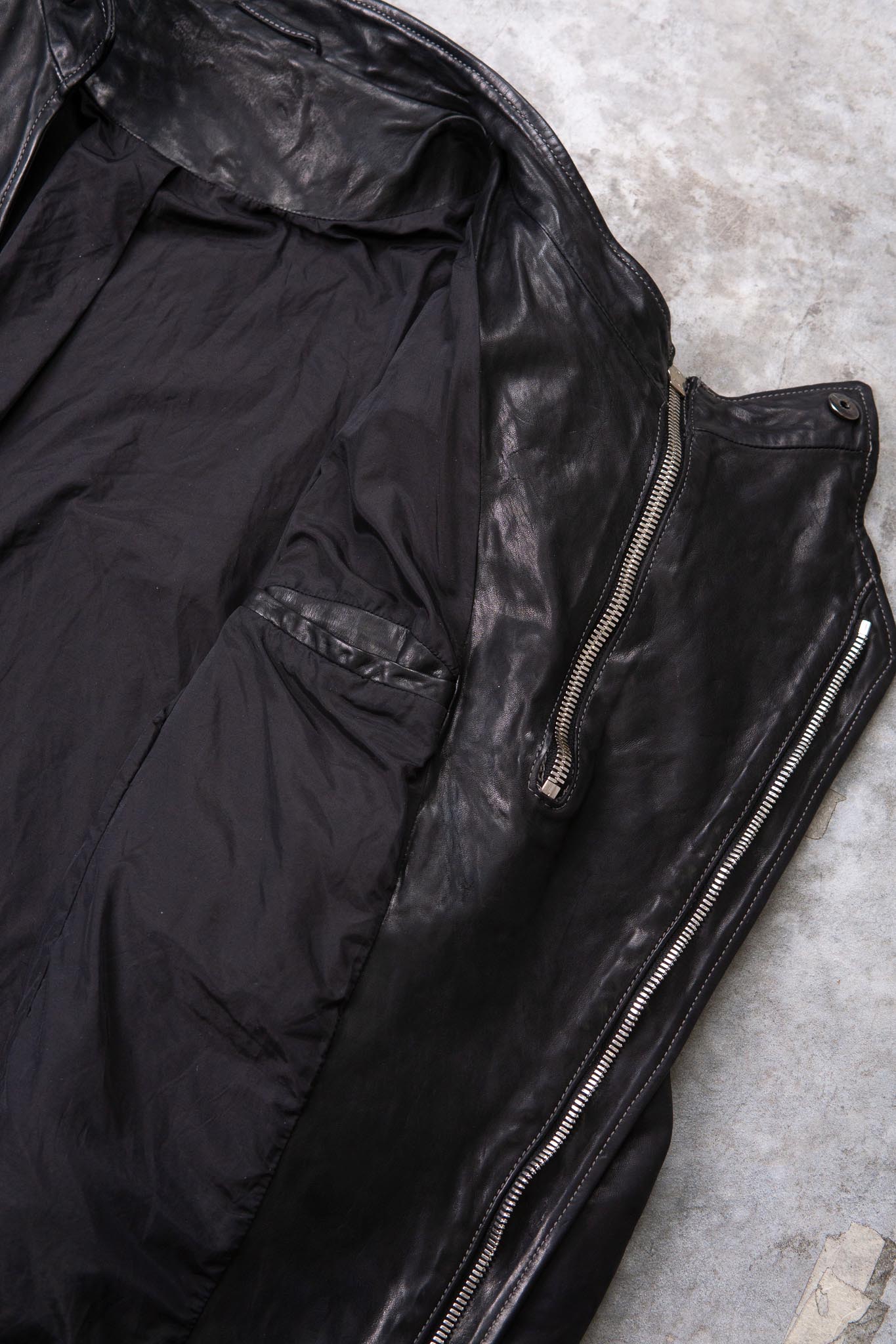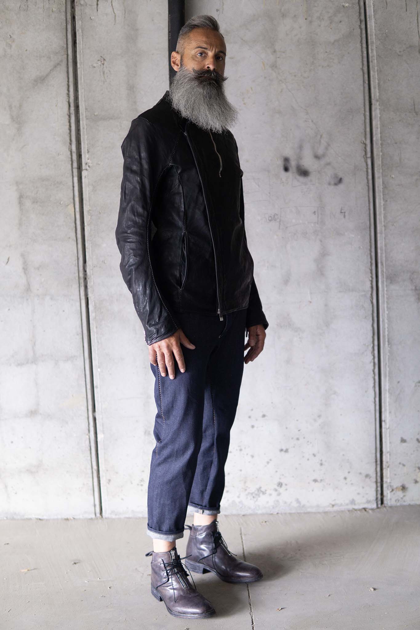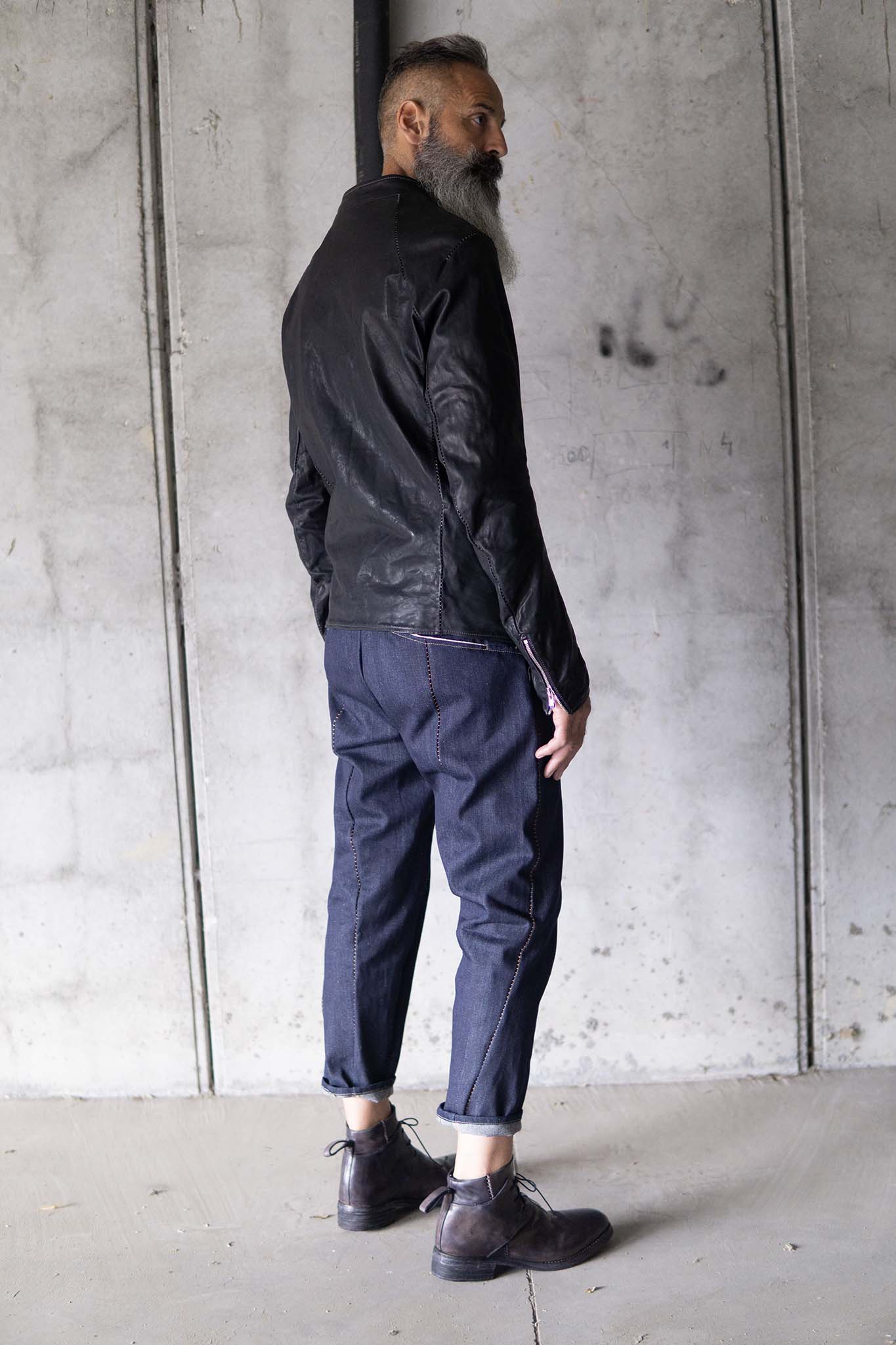 After the piece dyeing process, there is the lengthy natural drying of the products. Meanwhile, we hand correct the size. Then we oil and polish them when they are completely dry. All these processes are performed inhouse and by hand.
