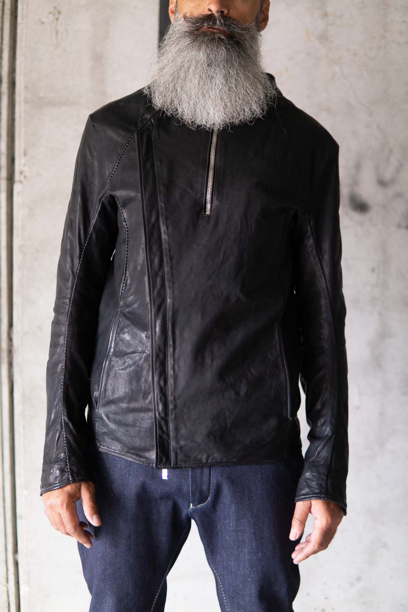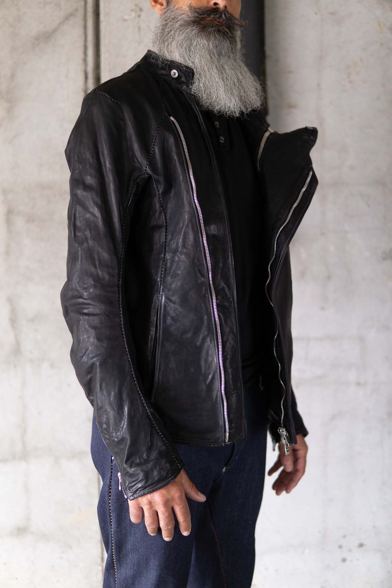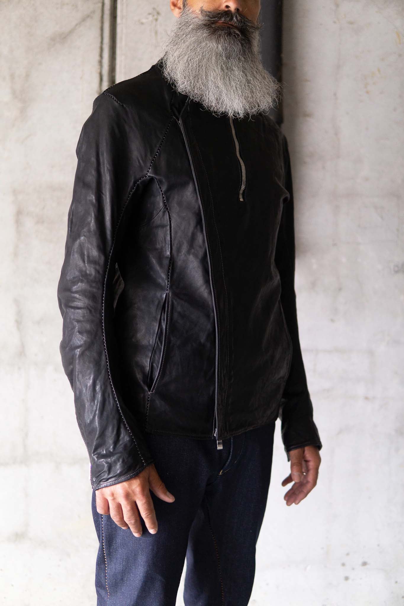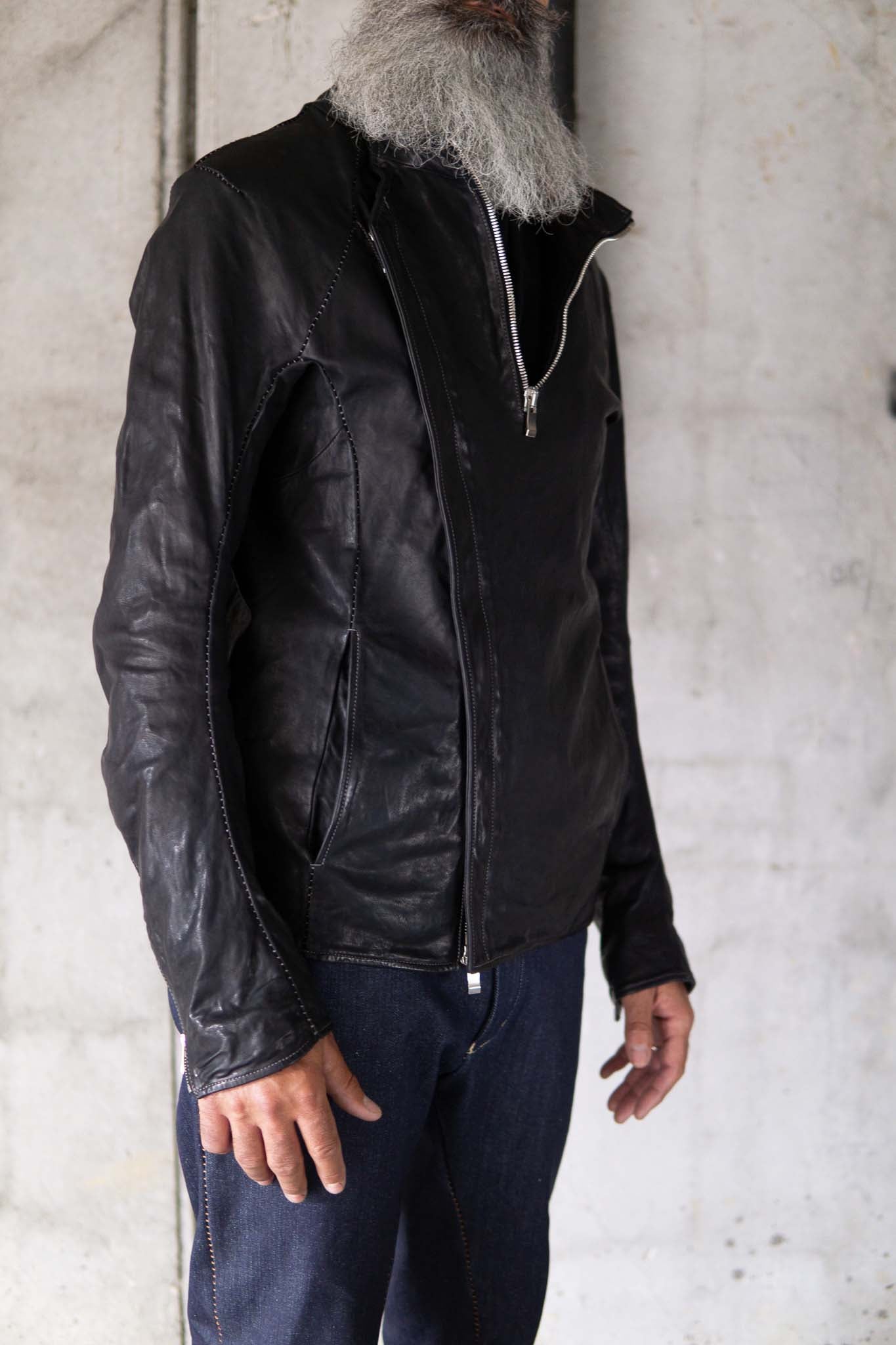 HORSE LEATHER STAND UP COLLAR W/BREAST MOTO LINED JBM-1