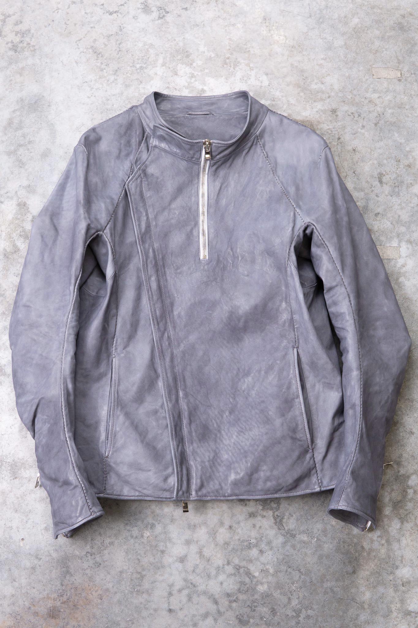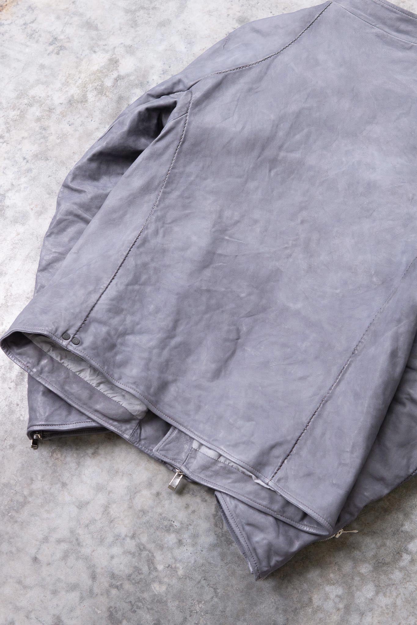 After the piece dyeing process, there is the lengthy natural drying of the products. Meanwhile, we hand correct the size. Then we oil and polish them when they are completely dry. All these processes are performed inhouse and by hand.